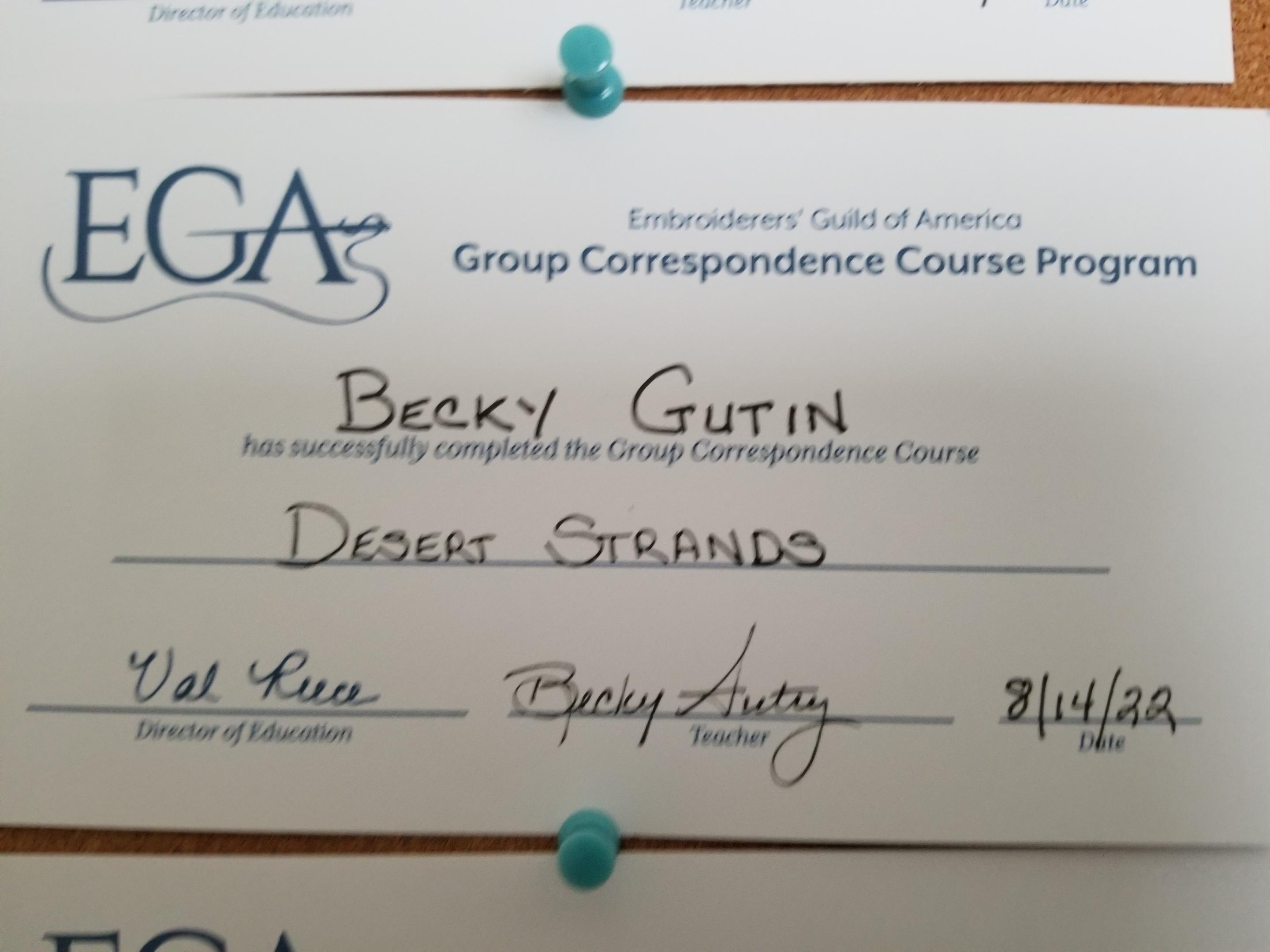 When I take EGA correspondence courses, the instructor includes a certificate of completion with the final submission. Online classes are kind of new to me but the…[Read more]