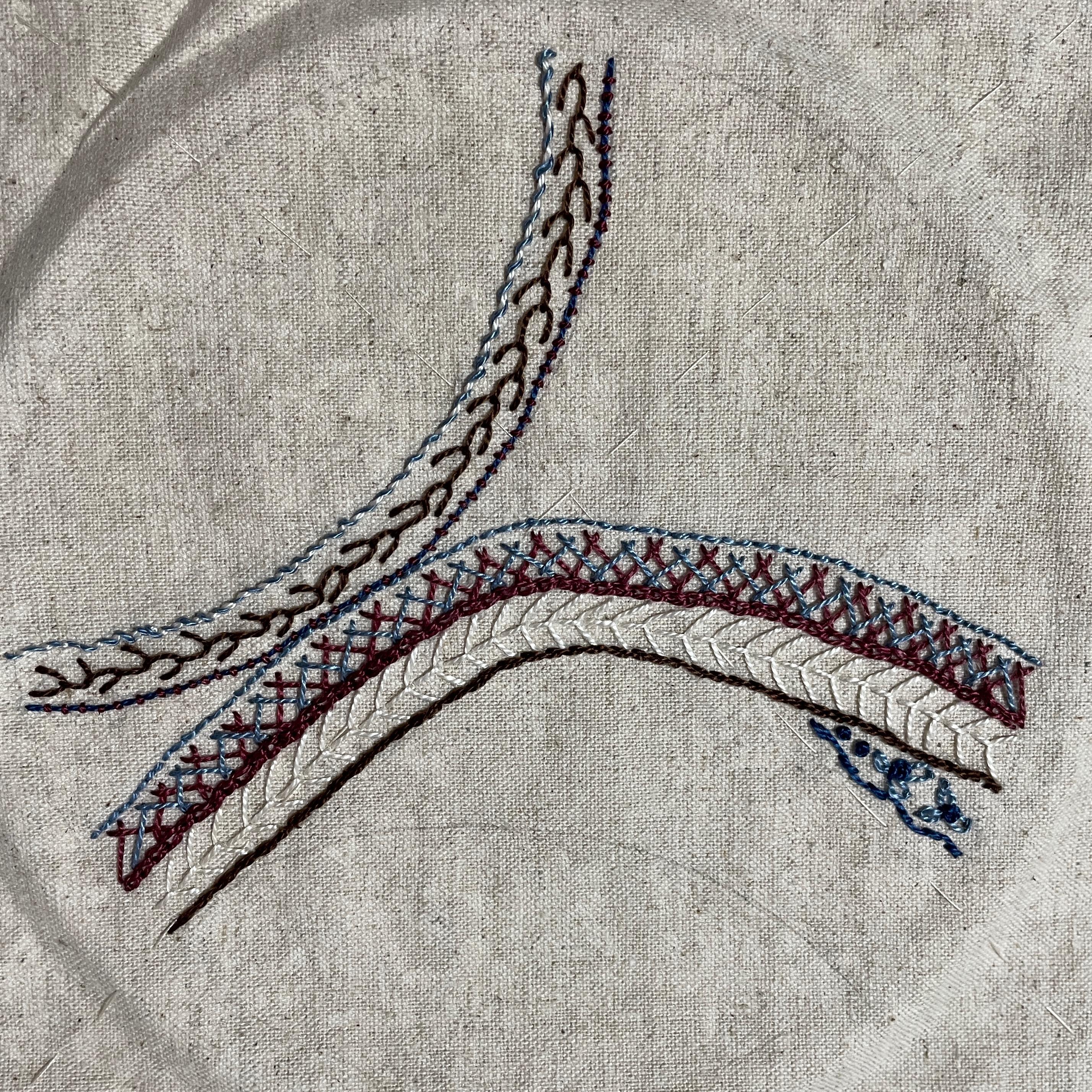 Tracy, I just looked at your work again and read that you are going to do another one in purples. It reminded me that I have a small box of hand dyed variegated pearl cottons. An “Ah ha” moment. I will try those on a second hoop’s worth of stitching and try the Palastrina stitch until I get it right!! I can also see making one of these to t…[Read more]