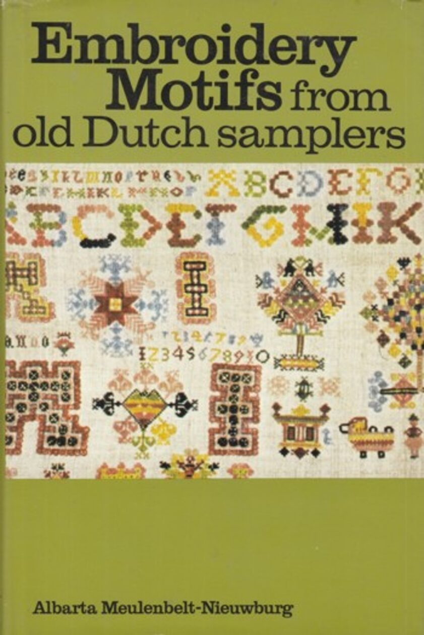 Our local EGA group was lucky to have a nearby shop that was owned by Eileen Bennett, who many of you may know and have taken classes from. She taught our group, what I believe may have been one of her first classes, Home is Where You Hang Your Needlework. She talked about samplers and their history during the class. She taught us how to stitch on linen and many specialty stitches. I fell down the rabbit hole on samplers! I purchased many of Eileen’s patterns and started to change the colors on them because I preferred brighter colors. I also purchased a book on Embroidery Motifs from Old Dutch Samplers (shown below), which inspired me to begin designing my own samplers.