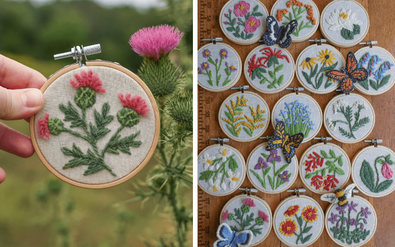 For example, I designed a series of small flowers that are each native flowers of the Eastern US, followed by a collection of stumpwork pollinators that would pollinate those plants. I am currently brainstorming a new set of embroidered tote bag patterns that will be inspired by antique scientific drawings of plants.