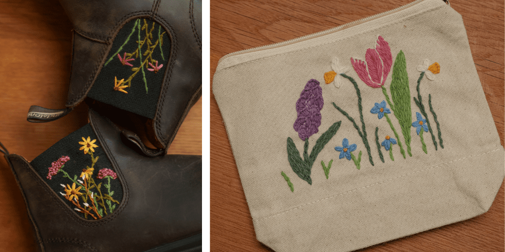 You designed the popular Outside the Hoop: Autumn Flowers Boots EGA published last year. What inspired you to embroider on a pair of Blundstone Chelsea Boots—and what advice do you have for beginner embroiderers interested in tackling embroidery outside the hoop?