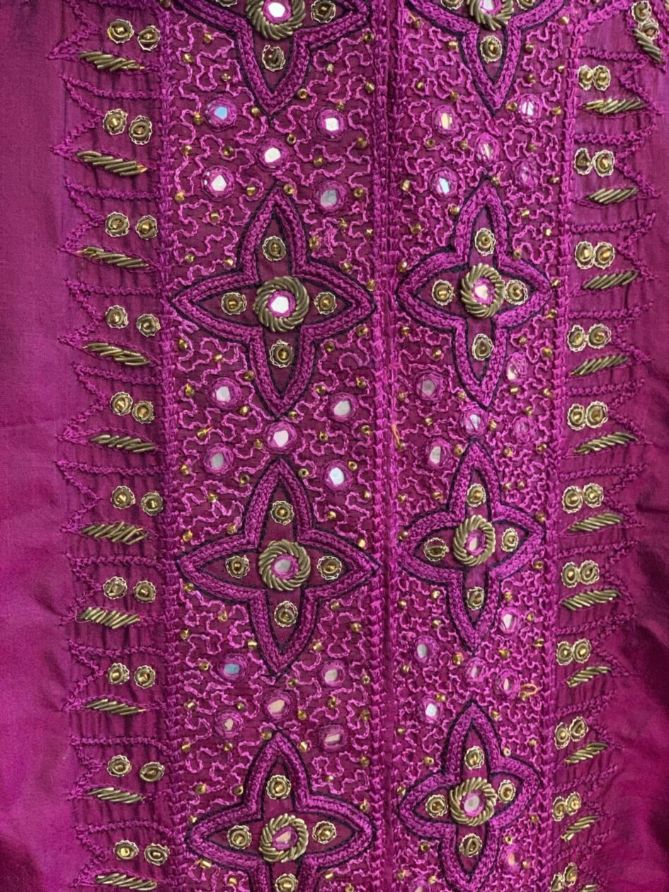 Motifs: Nature is a common theme in Zardozi embroidery, with flowers, leaves, vines, animals, fruits, and birds featured throughout. Paisleys are also popular—a nod to Zardozi’s Persian roots—as well as geometric patterns.