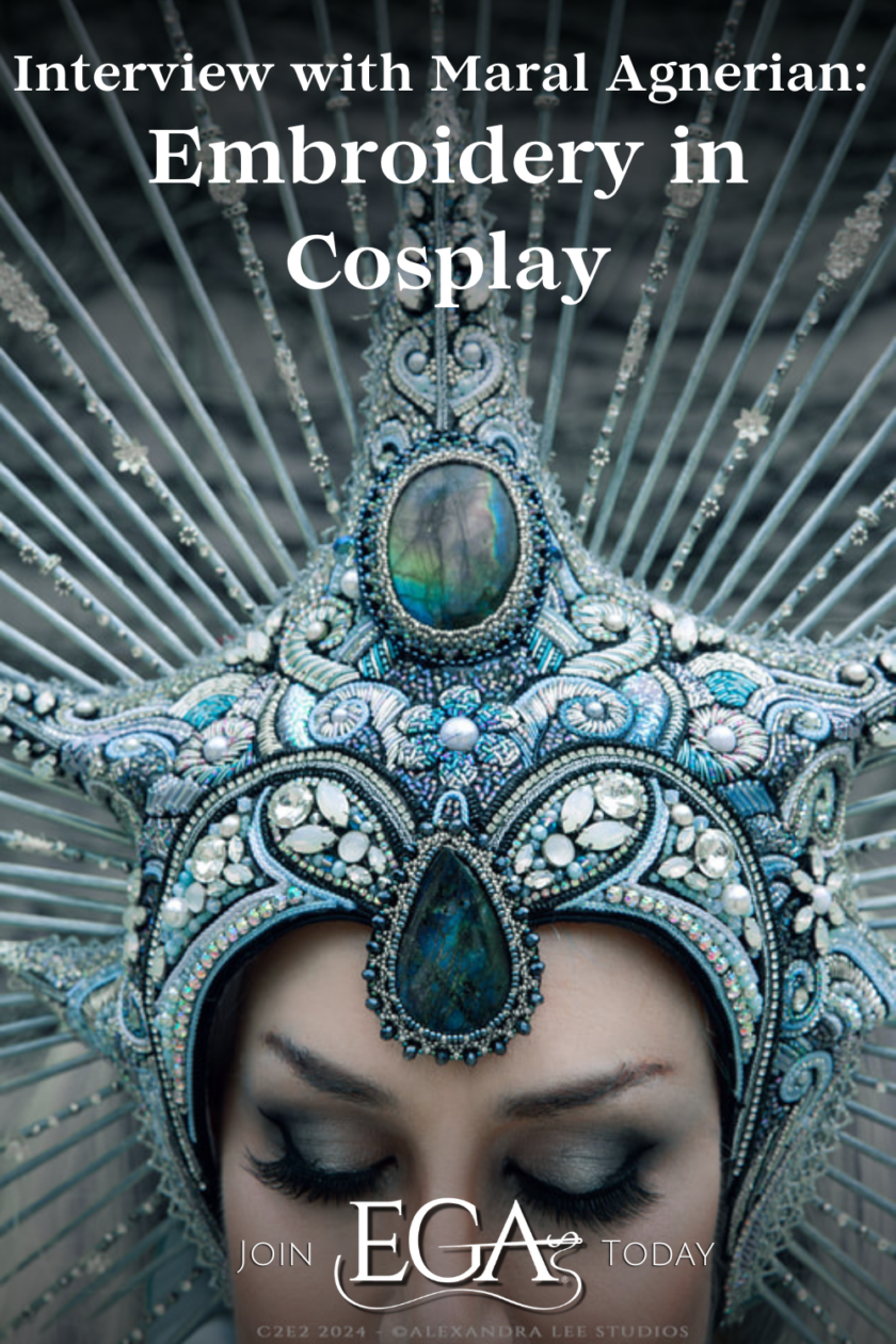 This month EGA was excited to sit down and talk about the resurgence of embroidery in cosplay with Maral Agnerian, AKA Sarcasm Himé. Maral leads our next virtual lecture, Embroidery in Cosplay, to illuminate the exciting world of cosplay and its engagement with needlework and textile traditions. Here, Maral shares her history with cosplay and the cosplay community, and how cosplay shines a light on the beauty inherent in slow fashion techniques, the value of women’s work, and the growing trend of using goldwork and embroidery in the cosplay community.