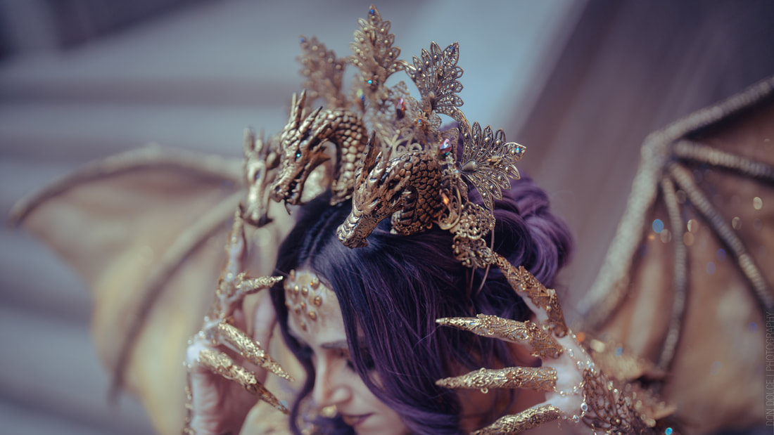 It’s hard to decide as my favourite work is often what I’ve done most recently, but one piece that always makes me smile is the headdress from my historical Ghidorah. He’s a 3-headed dragon from the Godzilla movies that I turned into an 18th-century-style dress, and made little dragon heads for the crown.