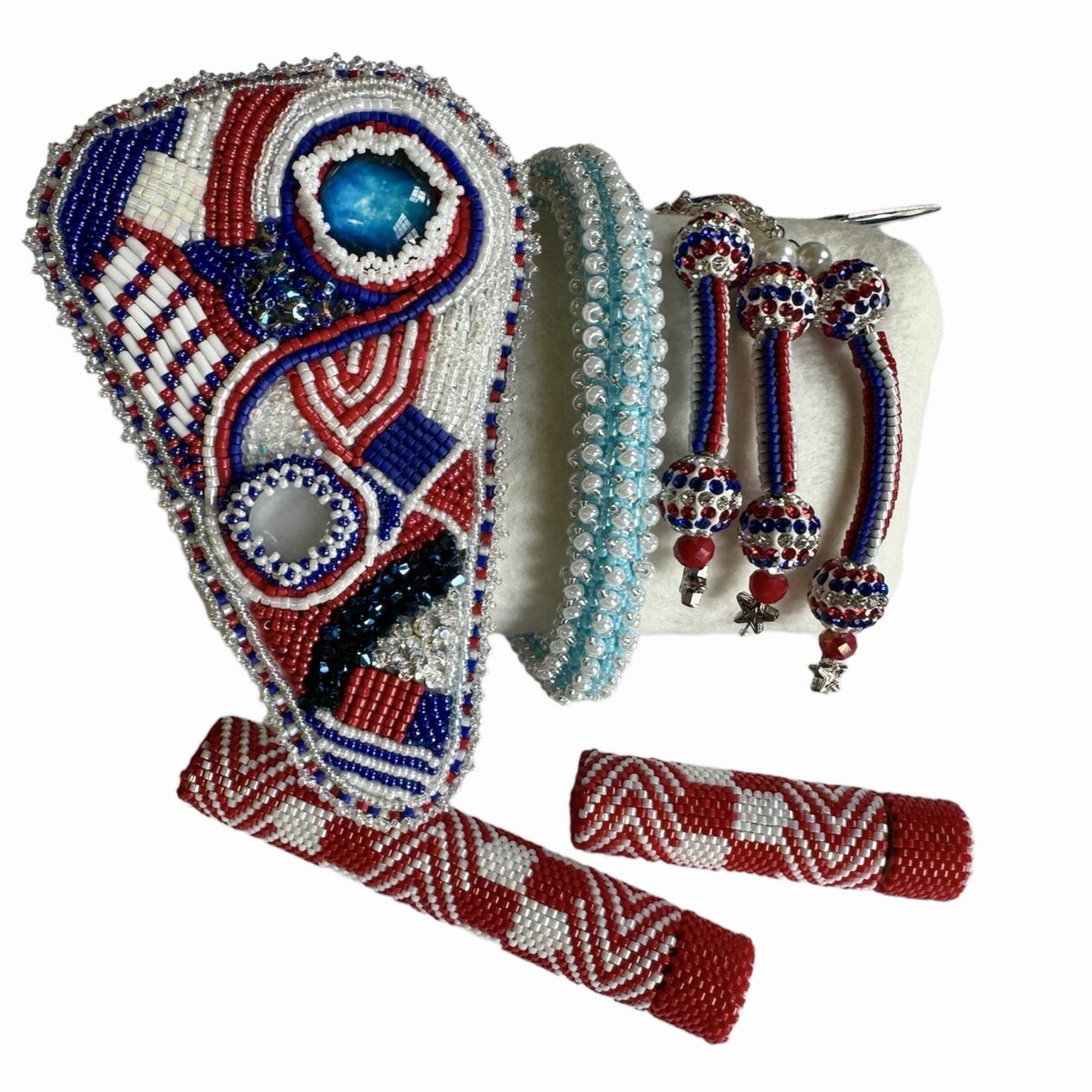 This GCC includes very simplified beading lessons in five techniques: Square Stitch, Herringbone Stitch, Even Count Peyote Stitch, Bead Embroidery, and Right-Angle Weave.