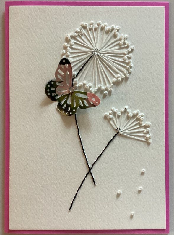Flower Dance on Paper is for all stitchers who also enjoy creating unique and beautiful cards for special people, this project combines both techniques: stitching and paper in a simple yet personalized design.
