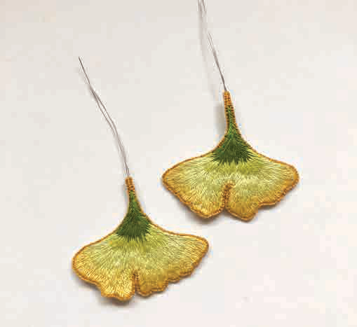 These earrings offer a wonderful introduction to stumpwork embroidery. Celebrate autumnal ginkgo leaves with these dangle earrings!