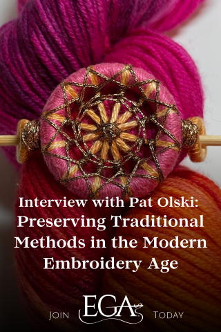 I also welcome stitchers to join me on social media @yarnwhirled on IG and Threads, and @PatOlski on Facebook, where I am a member of the EGA group and the Making Dorset Buttons group.