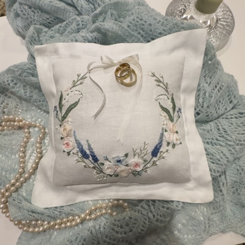 On the personal front, I recently finished a number of ringbearer pillows for family members and friends, and I got to play with silk and silk ribbon embroidery which was something I hadn’t done for a while, and that I found to be utterly captivating.