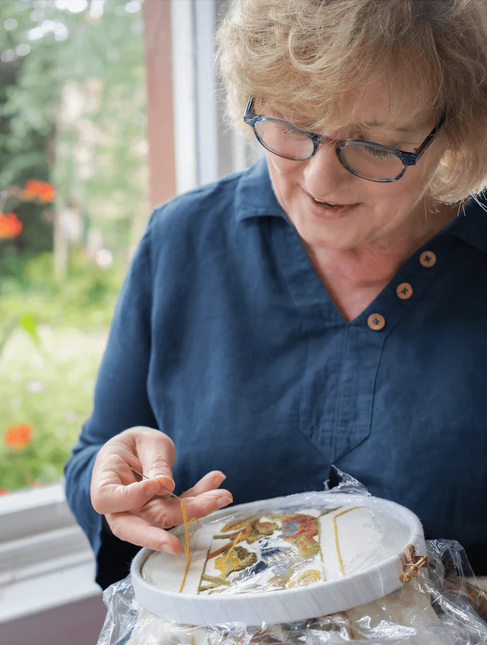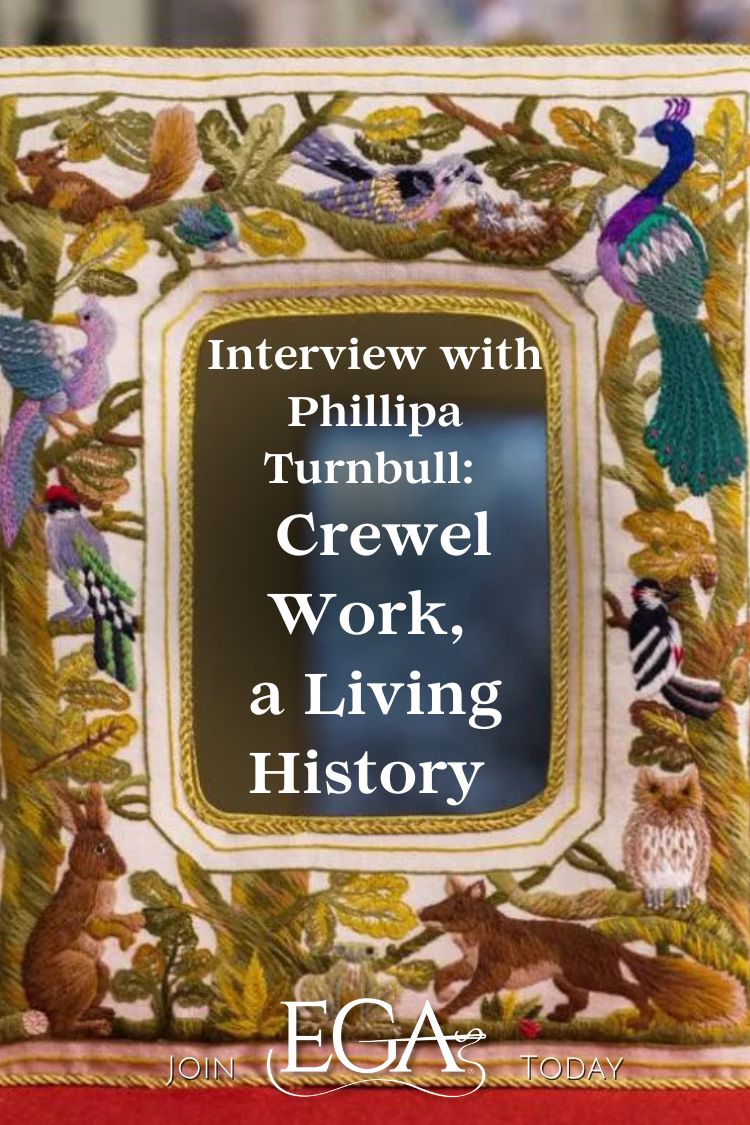 Phillipa Turnbull’s upcoming virtual lecture, A Timeline of British Crewel Work, explores the history of crewel work and its reflection of British culture. Phillipa describes crewel work as “forgiving and joyful,” and admits she only came to the art as a means to avoid an “ancient Singer sewing machine.” In this illuminating and entertaining interview, Phillipa shares her history with crewel work, why she spends so much time researching new designs, and how each piece of crewel work tells a story. Don’t miss Phillipa’s virtual lecture on March 14 or her upcoming online studio class Gawthorpe Peacock.