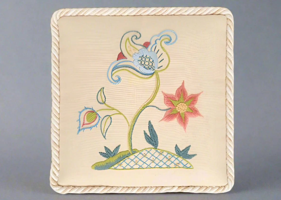 Crewel work has been made for extravagant display and for private pleasure, for status and for solace. How it was used and where it resides reflects how people lived, what they valued, and how open they were to influences from beyond their own borders.