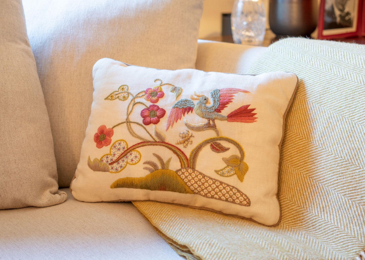 Laura and I own several wonderful historic examples ourselves, and collectors such as Lanto Synge have been endlessly generous with their knowledge. Laura has a great eye, and many years experience working for a top auction house, so between us we have a lot of fun selecting designs which can translate to be enjoyed in the 21st Century. Crewel work has a quiet but passionate community, and I’m lucky to be part of it.