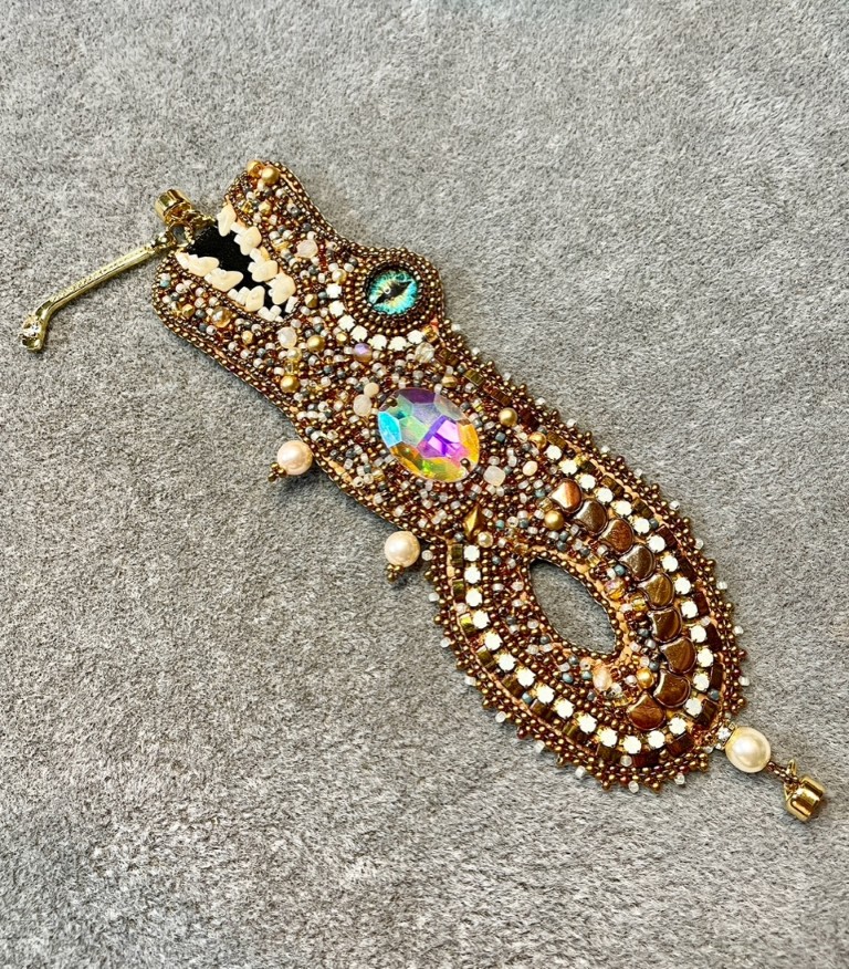 This Florida inspired bracelet is created in bead embroidery. It features an EH Ashley German cabochon, Japanese and Czech Seed Beads, Pearls and Czech components. Students will enjoy creating their Gator sized to their wrist using bead embroidery techniques and stitches.Technique: Bead Embroidery